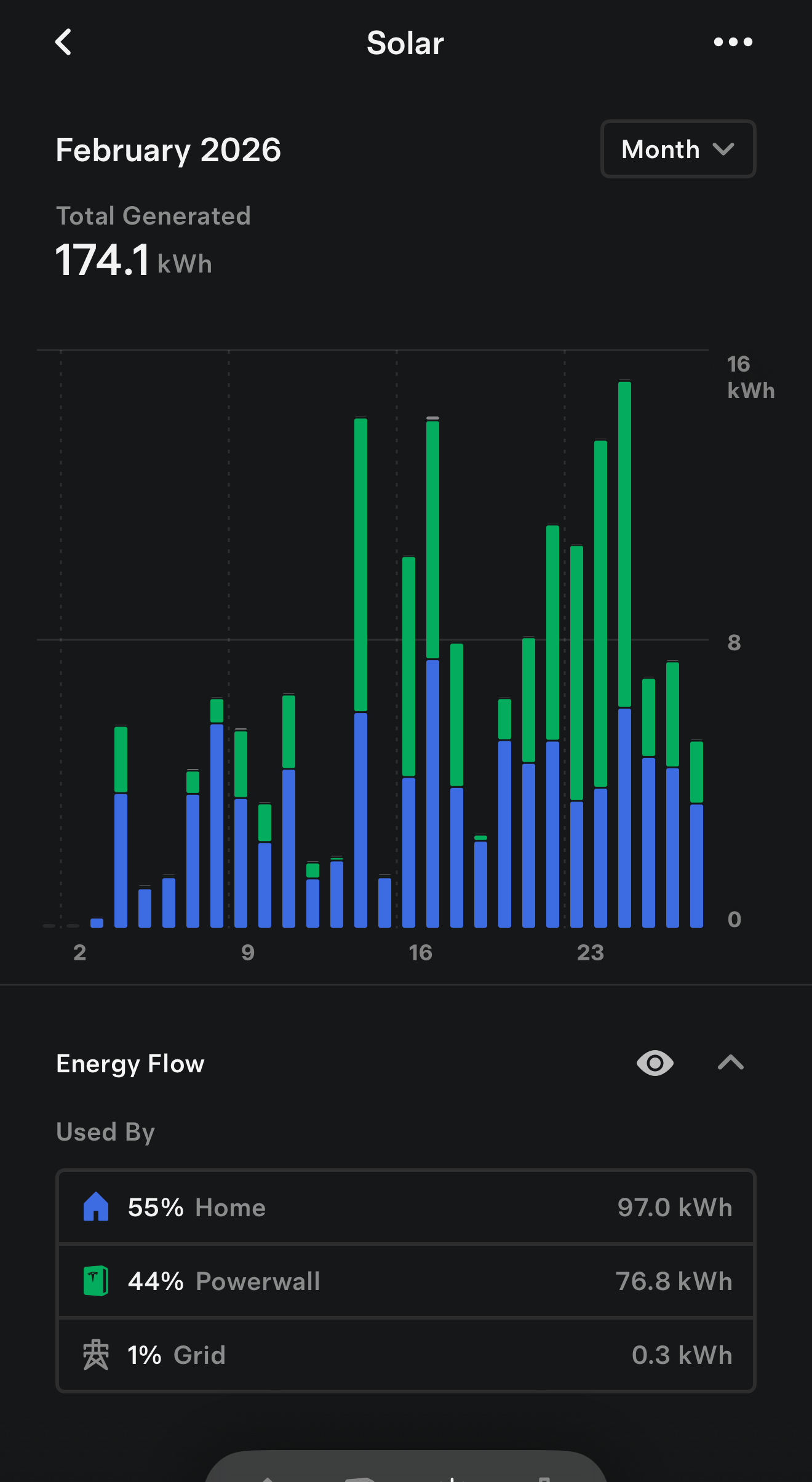 - February 2026 (from 2nd): 174.1 kWh generated